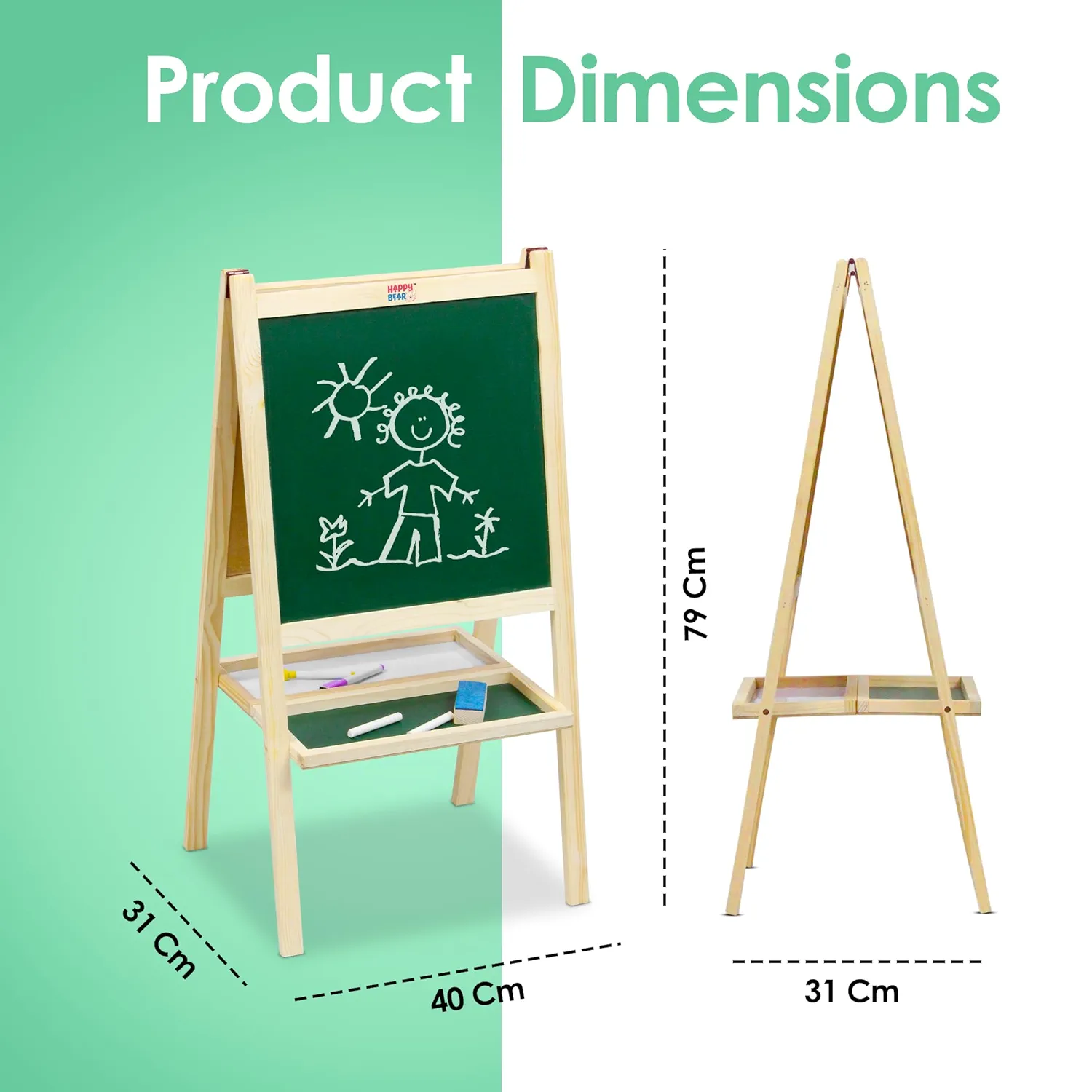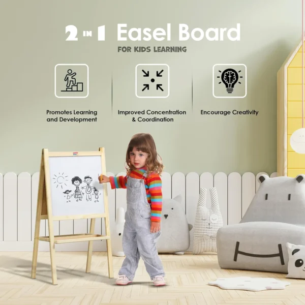 - Dual-Sided Writing Activity Board: Our wooden easel board features both a chalkboard and a whiteboard, offering versatile options for creative expression and learning.